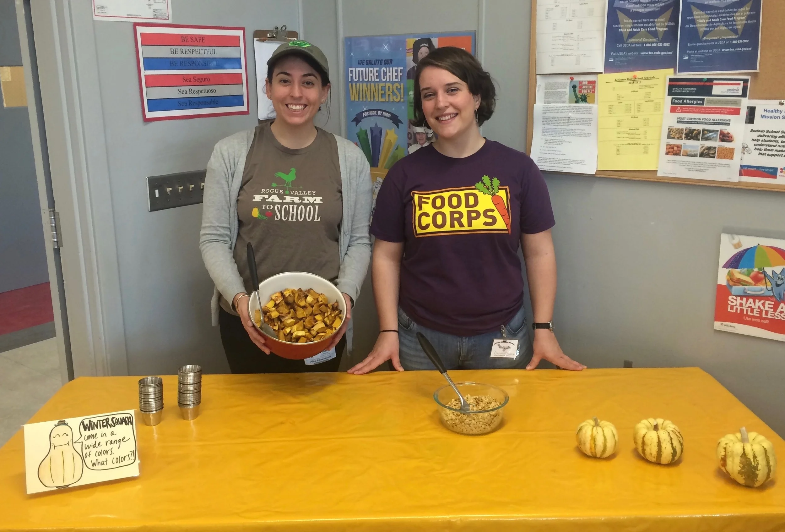 Rogue Valley Farm to School will be running local seasonal food tasting tables twice a week at lunch times on Tuesdays and Fridays during the Ashland YMCA's summer camps. Tasting tables involve serving samples of a local, seasonal fruit or vegetable prepared in two ways. After sampling, summer camp attendees receive a recipe to take home and vote on what they thought about the new foods.