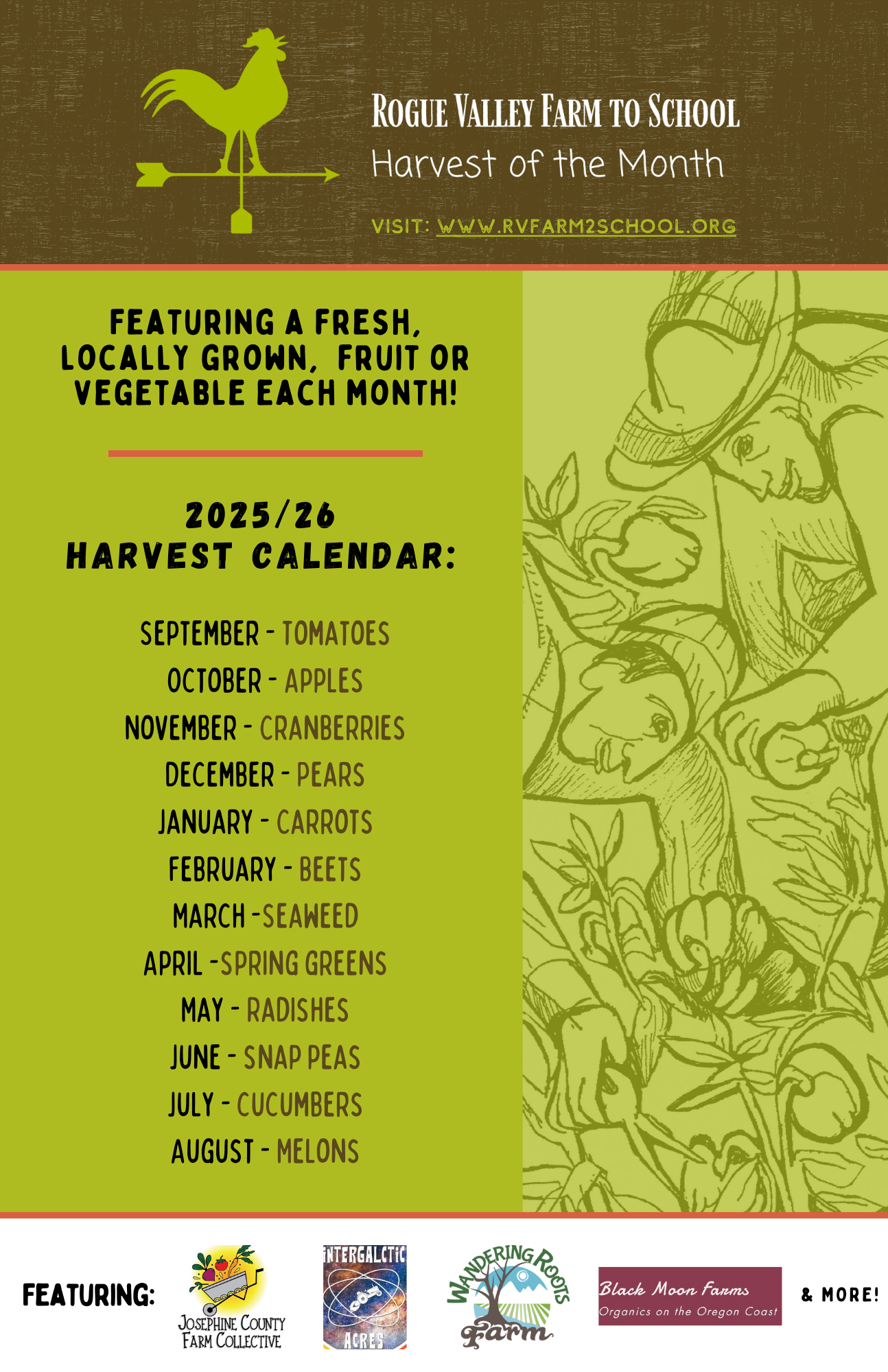 RVF2S partners with schools in Central Point, Phoenix and Talent to bring monthly Tasting Tables to cafeterias throughout the school year. Students sample local, seasonal fruits and vegetables in their cafeterias, then vote on what they thought about the new foods. RVF2S staff share the results with school food services to help inform future lunch menu items! Each student receives the recipes to take home and share with their families.